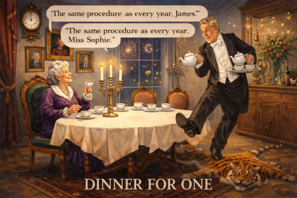 İşte Dinner for One tam olarak böyle bir yapımdır.