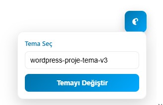 Eklenti etkinleştirildikten sonra, site üzerindeki sağ alt köşede bulunan butona tıklayarak temalar kolayca değiştirilebilir. Bu buton, site ana sayfanızda sağ alt pencerede bulunan alanda yer almaktadır. Böylece kullanıcılar, yönetici paneline gitmeye gerek kalmadan hızlıca tema değiştirebilirler.